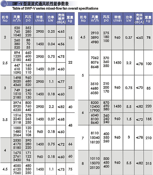 SWF系列混流式通風機由上海交通大學、上虞風機廠共同研制開發,具有同機號風機量較離心風機大,風壓較軸流風機高,可以軸向安裝等特點。本系列風機應用場合廣泛,如各類高級民用建筑、工礦企業等。北京首都賓館、亞運工程二十三個場館所、新華社大樓、五州大酒店、北京人民大會堂、釣魚臺國賓館等單位和上海、深圳等大城市都采用此類產品,還批量出口新加坡等東南亞地區和配套出口日本。