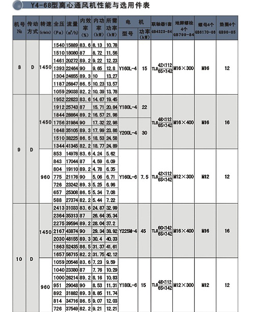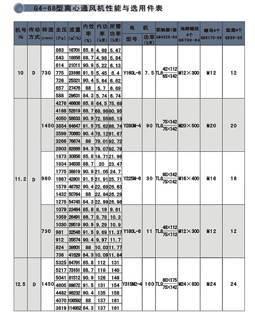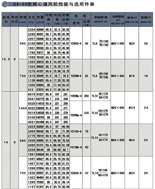 | G4-68、Y4-68型離心通、引風(fēng)機系本公司在行業(yè)聯(lián)合設(shè)計基礎(chǔ)上,引進日本ミツヤ公司的先進技術(shù)改進設(shè)計而成。該系列風(fēng)機適用于火力發(fā)電廠中230t/h以下蒸汽鍋爐的通、引風(fēng)配套,在無其它特殊要求時,G4-68型風(fēng)機亦可用于礦井通風(fēng)及一般通風(fēng)。 此兩系列風(fēng)機均制成單吸式,各有№8-16共7個機號,每種風(fēng)機的出風(fēng)角度又可制成0o、45o、90o、135o、180o、225o共六種,其傳動方式為D式,電動機與風(fēng)機聯(lián)接采用彈性聯(lián)軸器直接傳動。 |